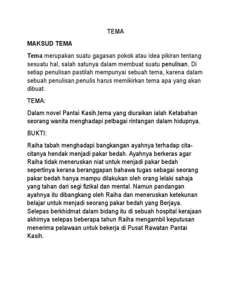 . Novel Pantai Kasih Sinopsis Tema Persoalan Nilai Pengajaran from wwwirujukanmy Apa tema dan persoalan novel pantai kasih tema novel pantai kasih. Kerajinan kegigihan raiha tekun belajar sehingga menjadi seorang pakar bedah sama seperti ayahnya. Novel pantai kasih sastera tingkatan 4 didik pelajar.